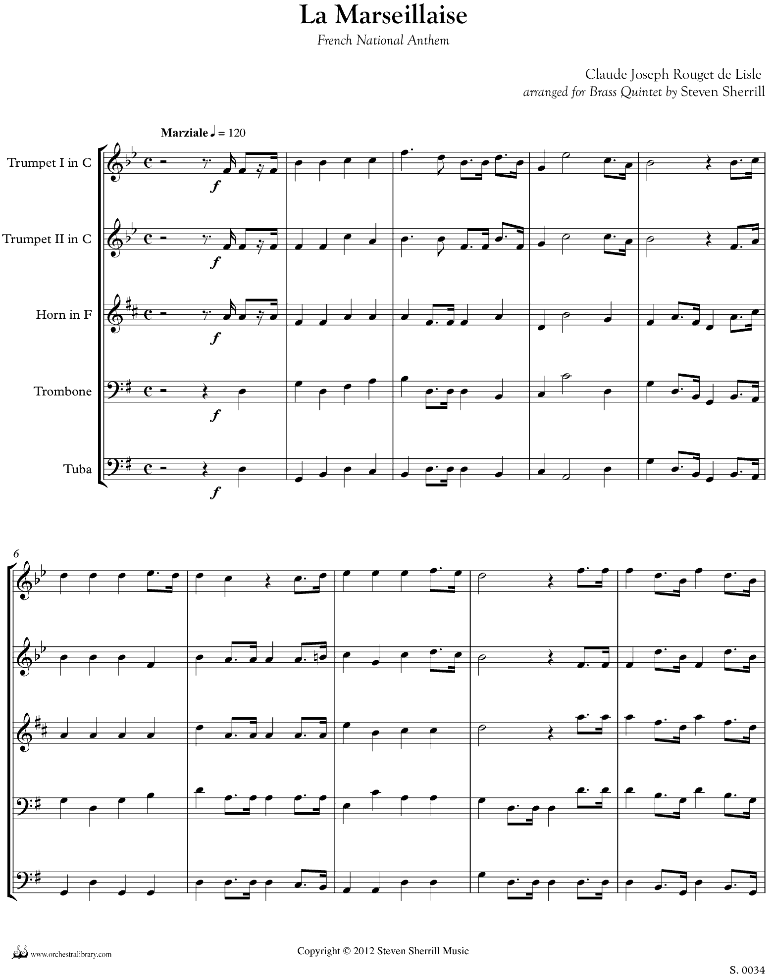 Marseillaise, La French National Anthem for brass quintet duration: 2'